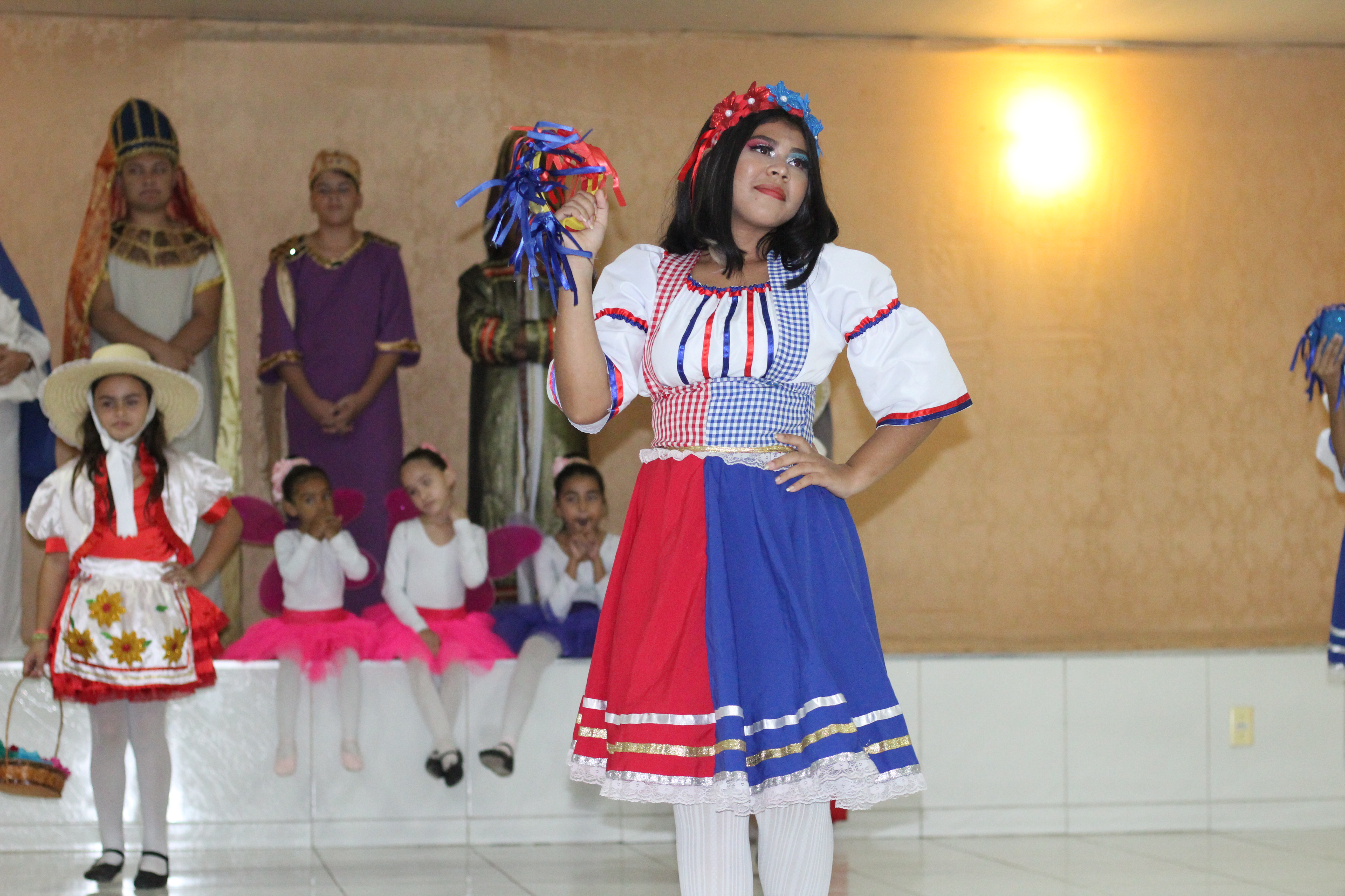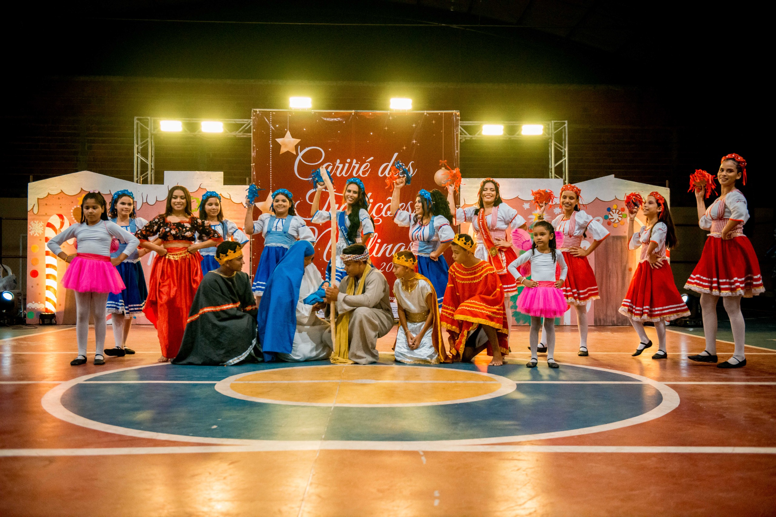 Aproximadamente 25 pessoas formam o nosso pastoril, entre dançarinas, atores e produção.