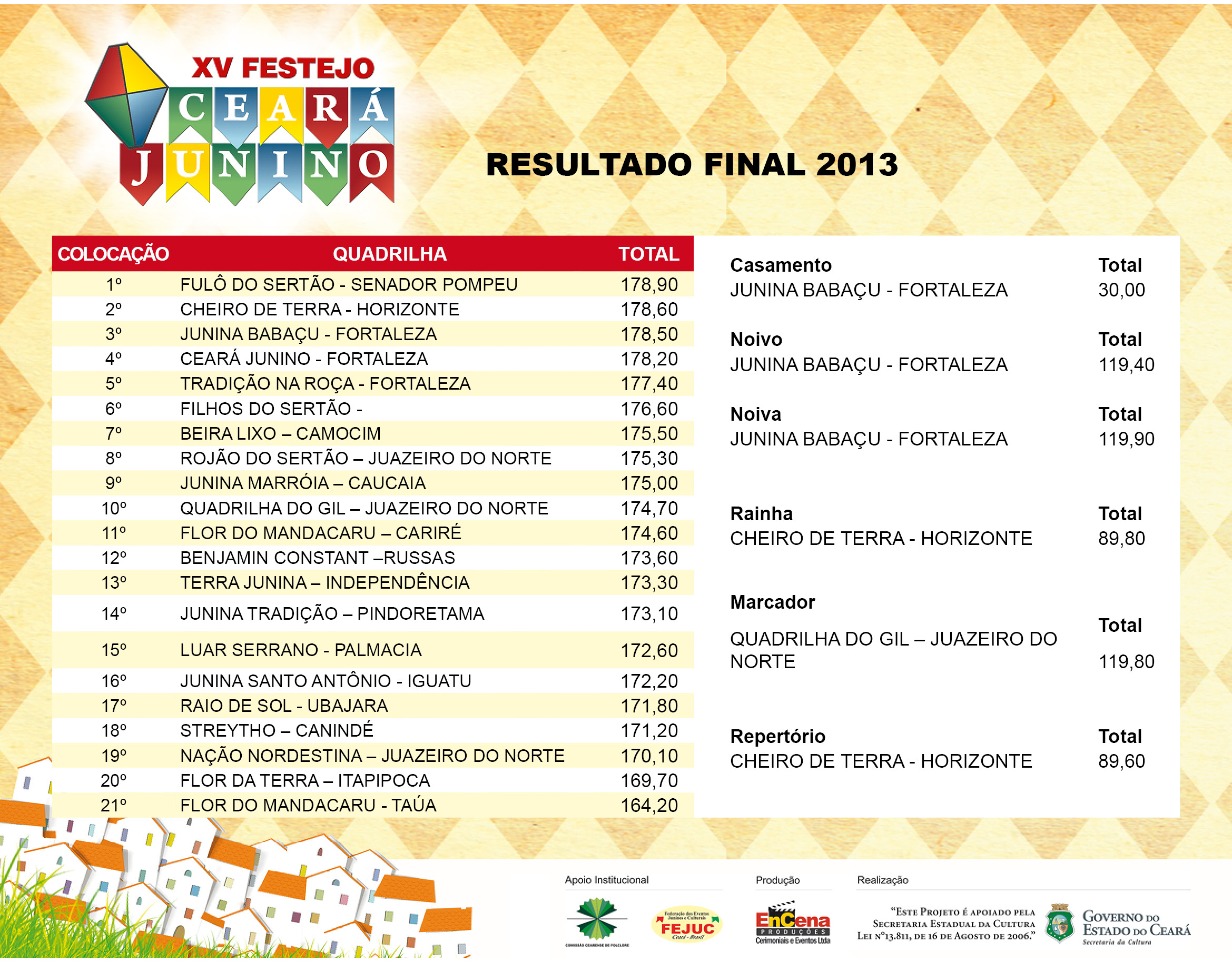 O XV Edital Ceará Junino – 2013, tem por objetivo identificar e difundir as tradições regionais cearenses voltadas para os festejos juninos do Estado do Ceará.