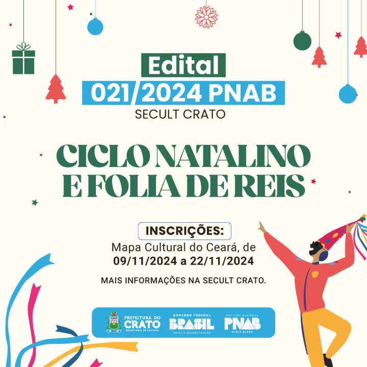 EDITAL DE CHAMAMENTO PÚBLICO Nº 021/2024 - PNAB SECULT CRATO [CICLO NATALINO]